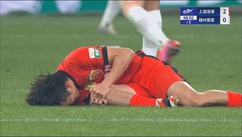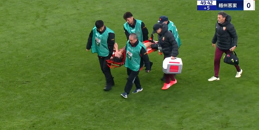 中超第4轮,上海海港vs梅州客家,比赛第51分钟,王振澳与对方球员冲撞后倒地,随后因伤被担架抬出场外,球员离场时痛苦掩面。