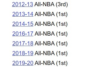 ?️生涯无二阵!哈登8次最佳阵容:6次一阵!2次三阵!