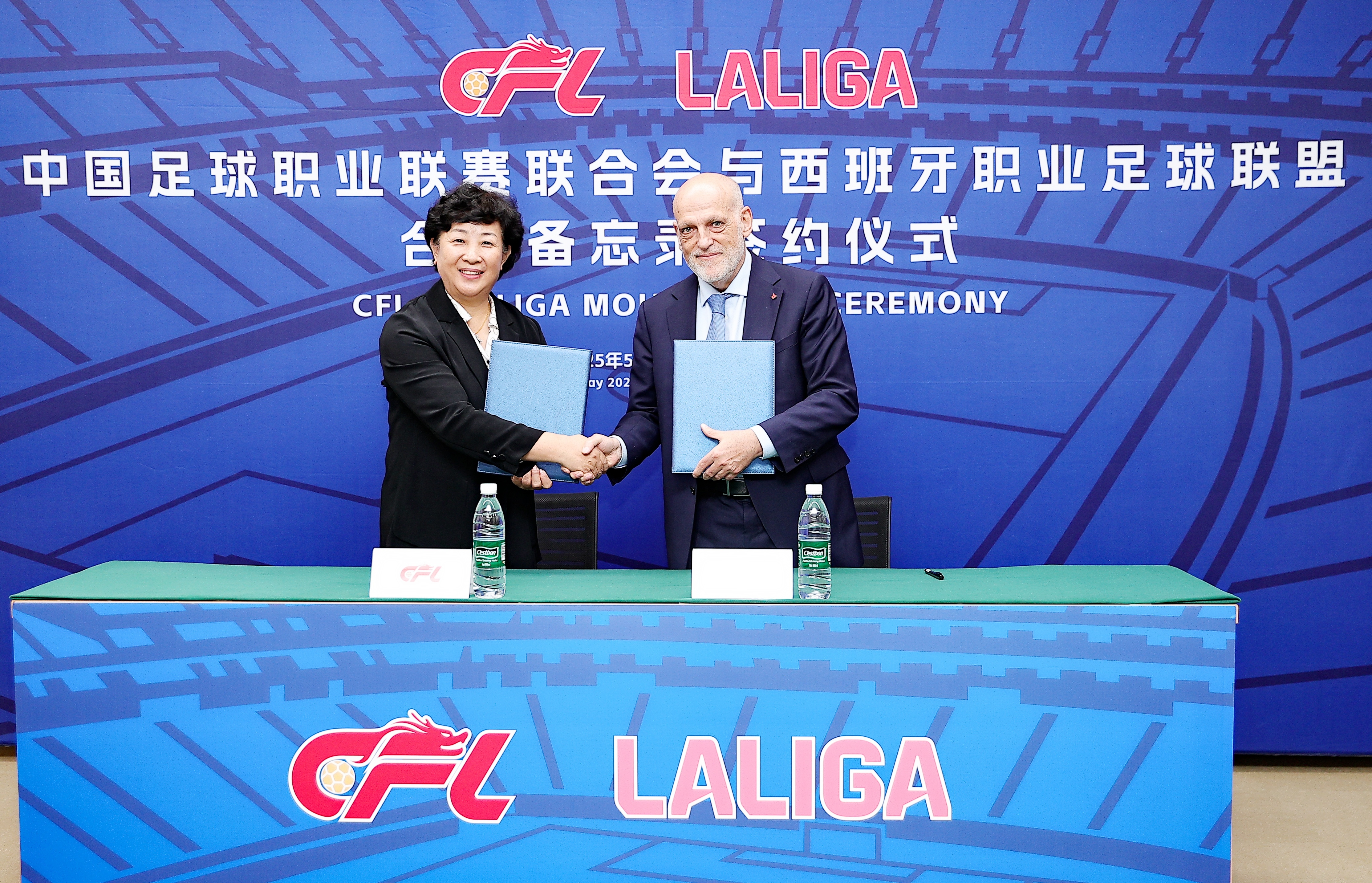 28日,中足联与西甲联盟达成重要的战略合作关系,共同签署了为期四年的合作备忘录,提出未来将在职业联赛体系建设、青训体系优化等领域展开全方位的合作。双方将在顶层设计共建、人才交流互促和青少年足球根基筑牢三个方面持续发力,将合作内容转化为具体的成果,推动中国职业联赛的长远可持续发展。